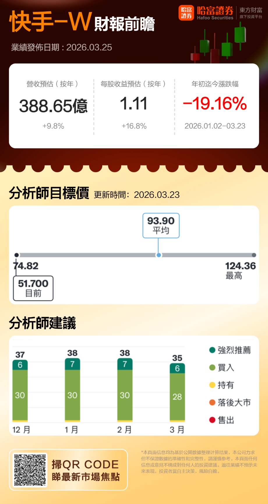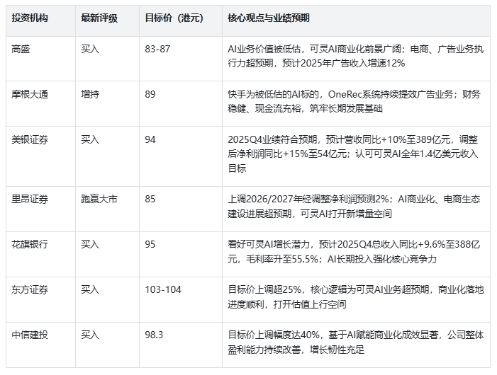 截至 2026 年 3 月,主流投资机构对快手的评级呈现出高度一致的看多倾向。